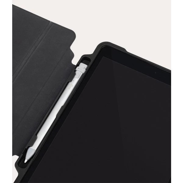 Super beskyttende etui til iPad 10,2″, der delvist er lavet af genanvendt plastik. Etuiet har en anti-chok bagskal dannet af en TPU-perimeterkant og en stor flade i gennemsigtig polycarbonat. Takket være den militære drop-certificering MIL-STD-810 er din iPad beskyttet mod fald på op til 1,2 meter. Frontklappen fungerer også som et stativ, der kan justeres til en række forskellige positioner, mens den praktiske magnetlukning giver ekstra beskyttelse til din enhed. Alunno er udstyret med et indvendigt rum til Apple Pencil eller Logitech Crayon.