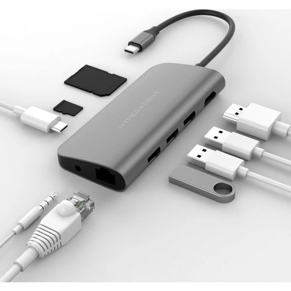 Universal USB-C-hub til MacBook, Chromebook og pc. Denne USB-C-dockingstation tilføjer 9 porte: USB-C-strømforsyning, 4K HDMI, gigabit ethernet-adapter og mere.