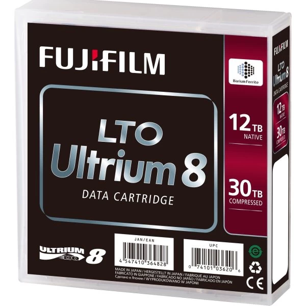 Fujifilm LTO Ultrium 8 Cartridge er produceret med barium ferrite-magnetiske partikler ved hjælpe af Fujifilms kerneteknologi, NANOCUBIC, som sikrer et tyndt og ensartet coated magnetisk lag.